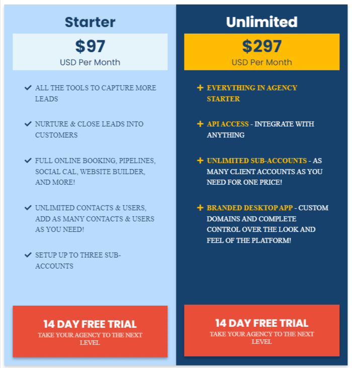 - GoHighLevel gives unlimited access to its tools such as sales funnels, email creation, landing pages, and more